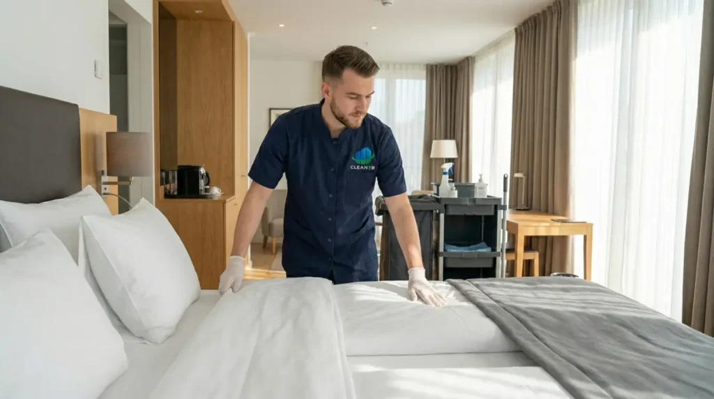 Clean2B Dresden ist Ihr verlässlicher Ansprechpartner für professionelle Hotelreinigung und effizientes Housekeeping. Wir kennen die hohen Anforderungen der Hotellerie und legen größten Wert auf Sauberkeit, Zuverlässigkeit und einen überzeugenden Gesamteindruck. Unser erfahrenes Team reinigt Hotelzimmer, Sanitärbereiche und öffentliche Zonen wie Lobby, Flure und Aufzüge gründlich und hygienisch. So präsentieren sich Ihre Räumlichkeiten jederzeit gepflegt, während Sie sich ganz auf den reibungslosen Hotelbetrieb und das Wohl Ihrer Gäste konzentrieren können.Skalierbares